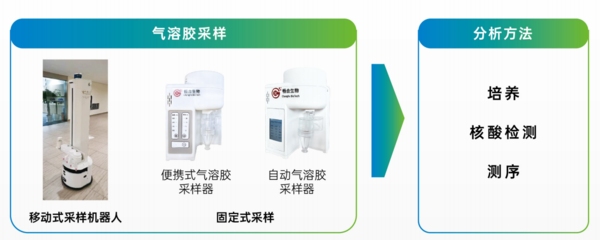 采用移动式或固定式采样器进行现场采样,根据需求富集空气中的生物气溶胶颗粒,在采集过程中最大程度保持其活性,快速、简单、灵活,为后续检测提供可靠保障。采集的样本可根据需求用多种方式进行分析。 方案二:生物气溶胶采测仪